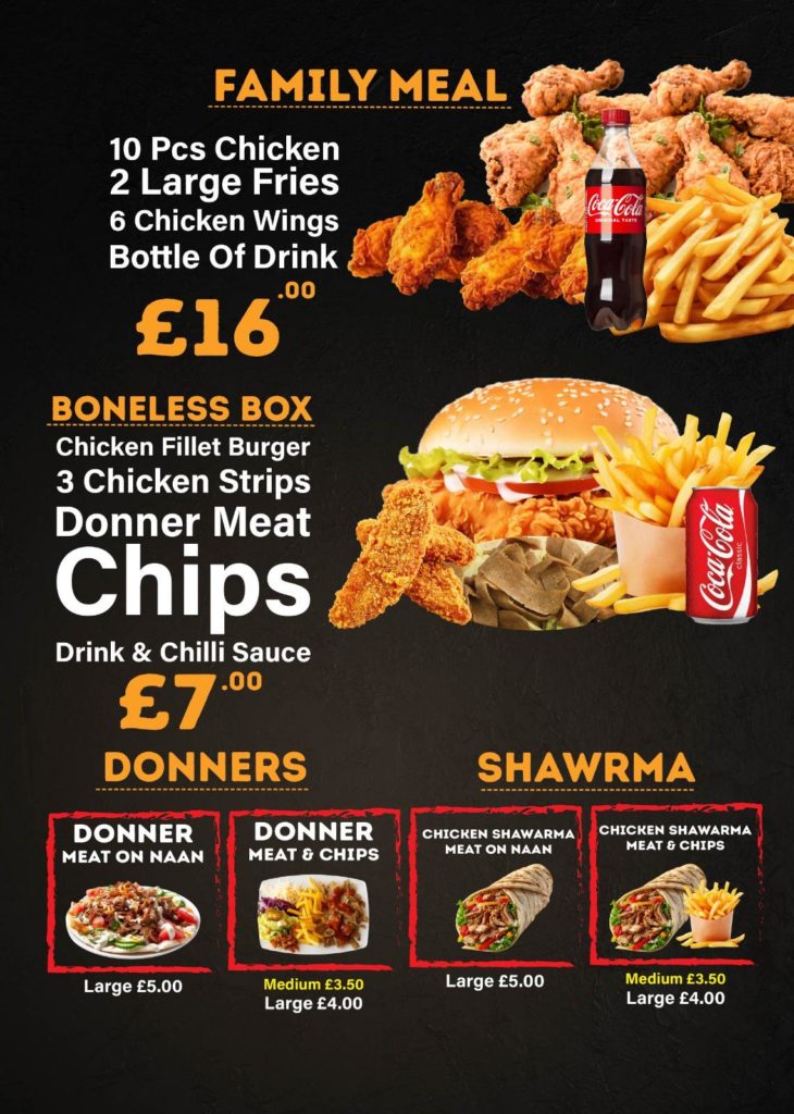 Whether you’re stopping by for a quick lunch, a family dinner, or a takeaway night, our menu is designed to satisfy every craving.
